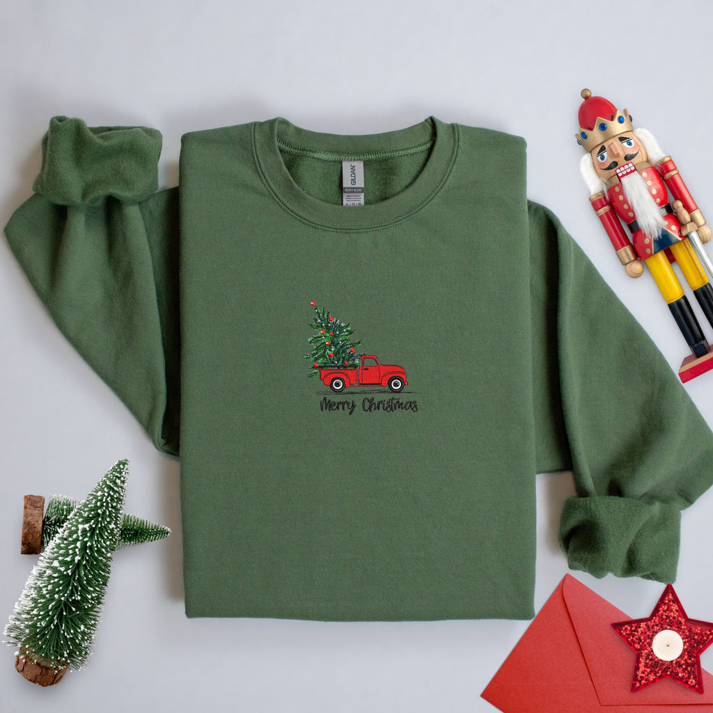 Embroidered Christmas Sweatshirt, Christmas Sweater Woman, Christmas Sweater Funny, Christmas Sweater, Merry Christmas Truck, Women's gift