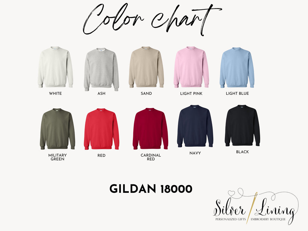 Sample sweatshirt: shown in Pink with Red and Green thread. **Colors are as shown and cannot be changed**